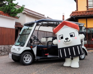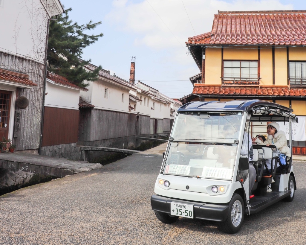倉吉市で運行中の『グリーンスローモビリティ(通称:グリスロ)』。